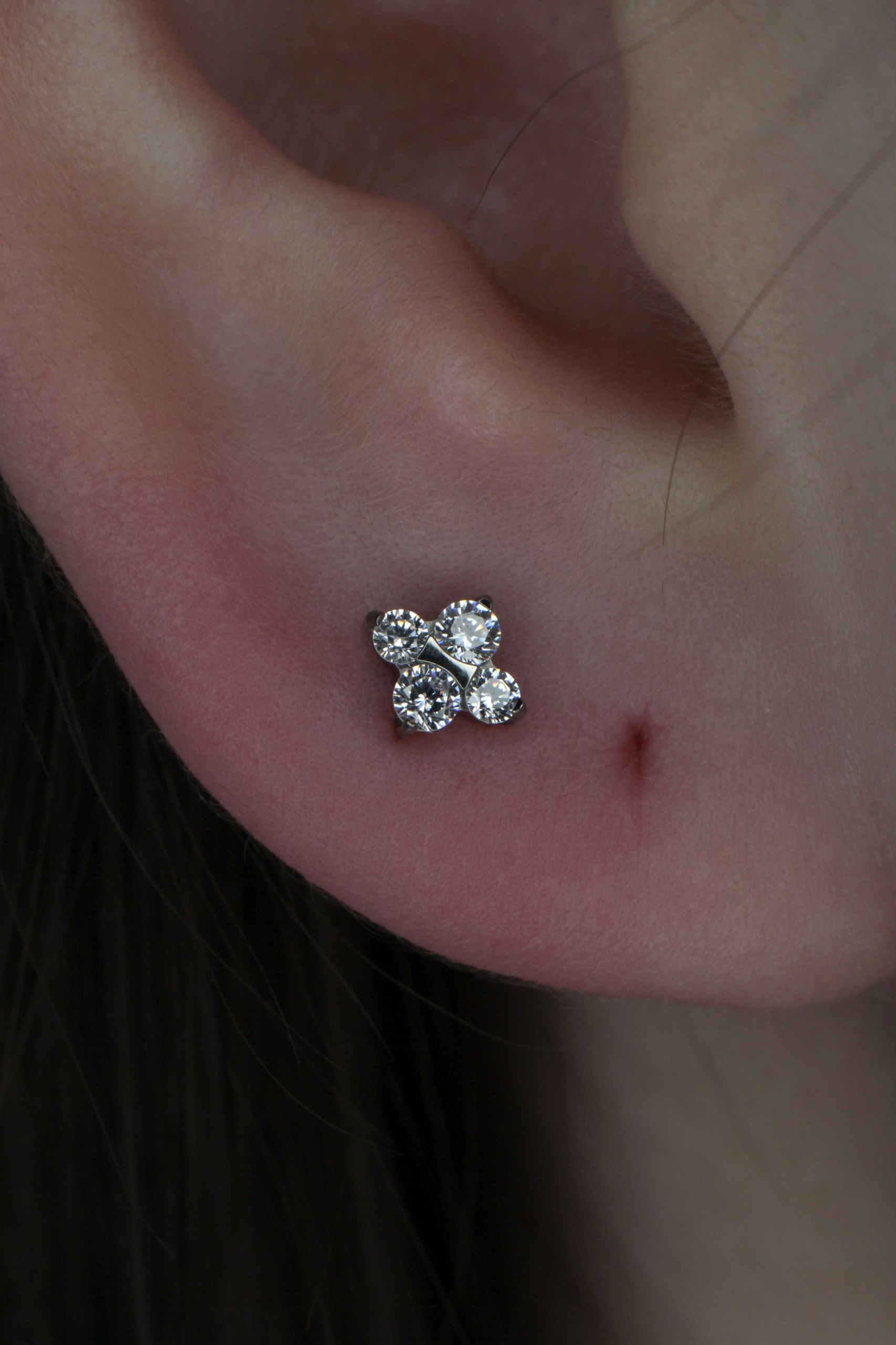 В процессе взросления, проколы могут мигрировать и выглядеть не так, как хотелось бы. Часто ко мне приходят с детскими проколами, которые с возрастом мигрировали, в данном случае можно попытаться обыграть старые проколы украшениями или сделать новый прокол.
